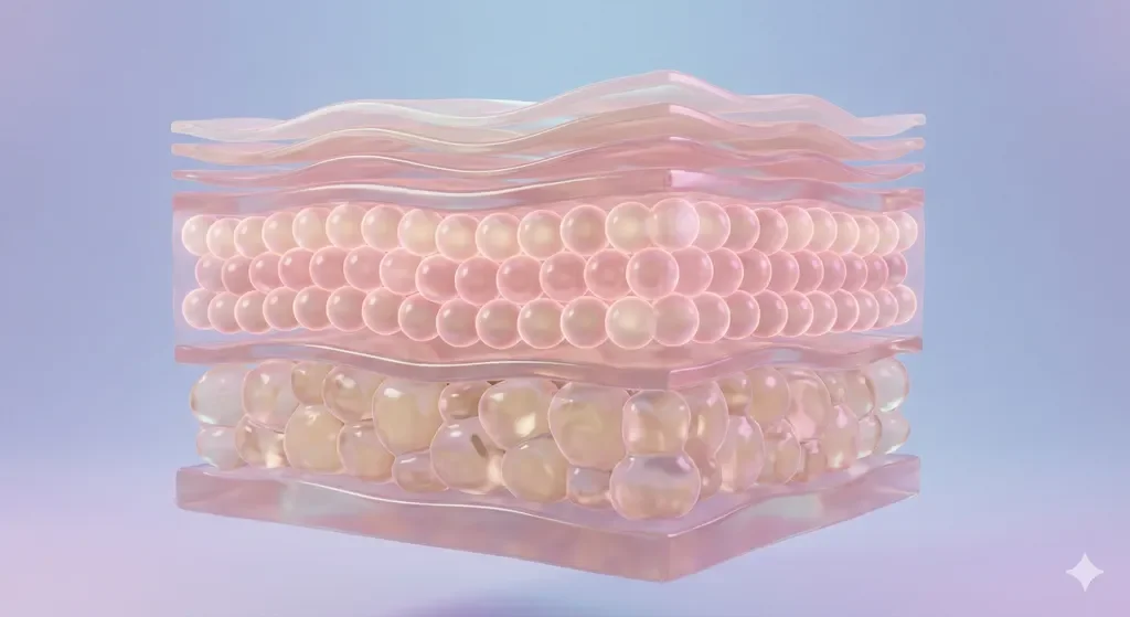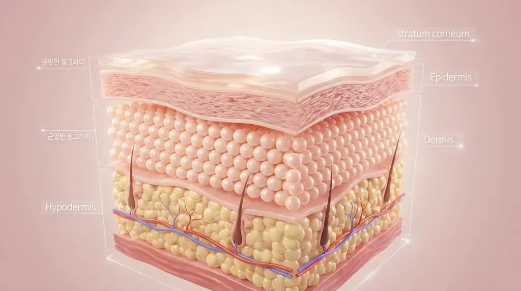 피부 구조를 다층으로 보여주면서도 클린·반투명·뷰티 톤을 유지한 모델링이 핵심입니다.