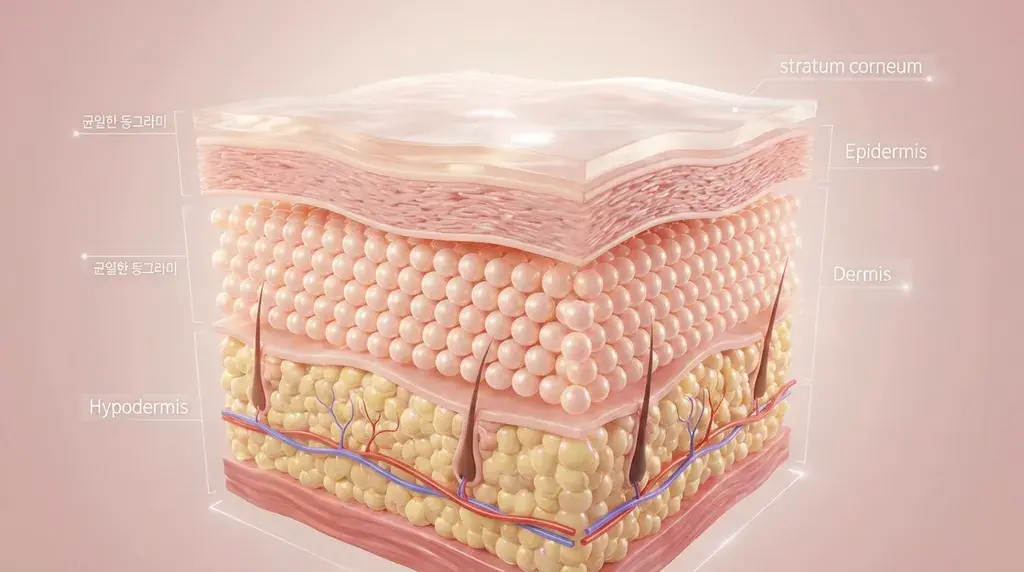 피부 구조를 다층으로 보여주면서도 클린·반투명·뷰티 톤을 유지한 모델링이 핵심입니다.